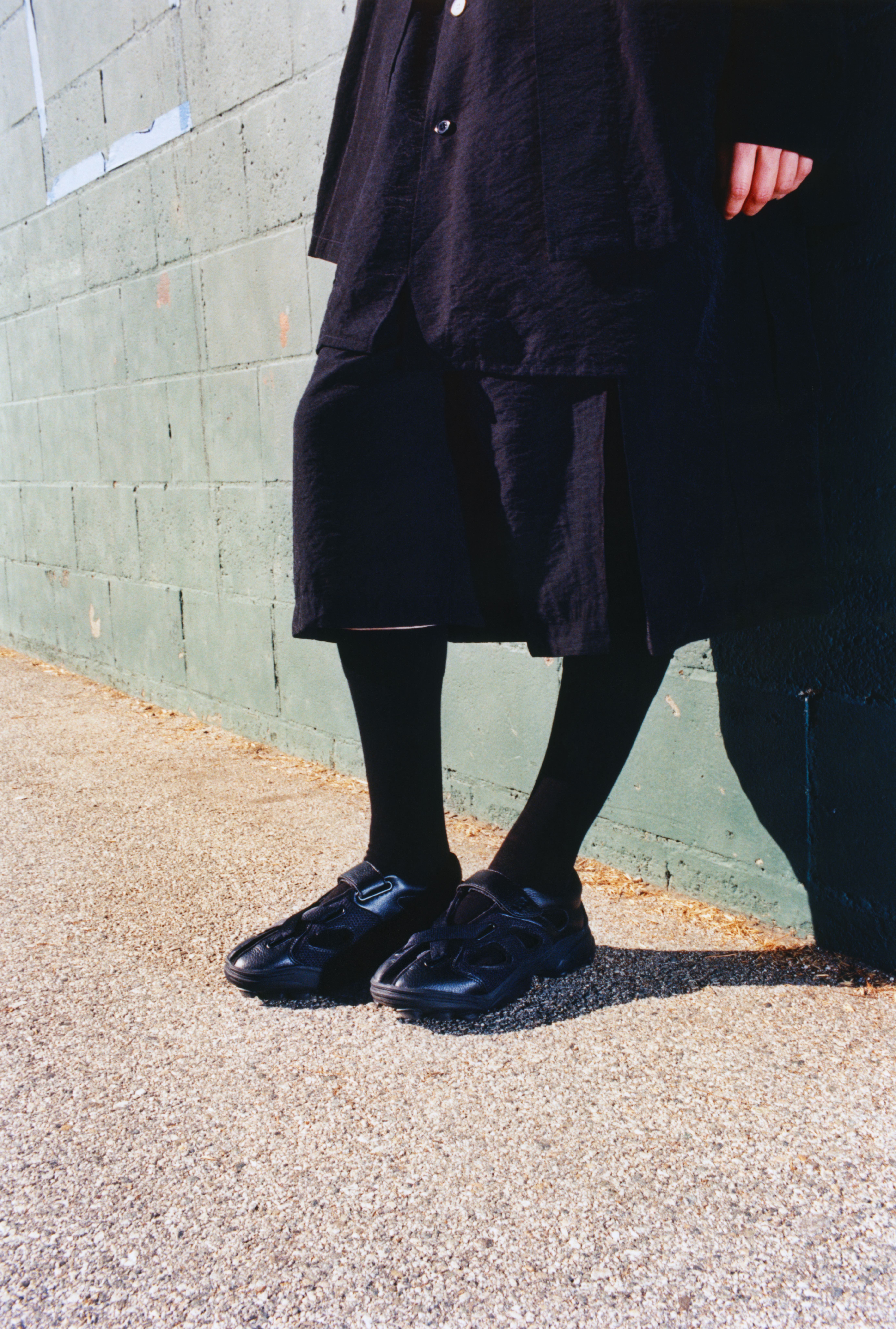 Shot by longtime collaborator Oscar Foster Kayne, the visuals frame Y-3’s design language at its widest range. Sport-led silhouettes such as jerseys and performance layers sit alongside tailored pieces, while the footwear offering moves between minimalist sandals, low-profile shoes, and reworked basketball-inspired designs. Models move through the city with an ease that mirrors the collection’s balance between function and form.