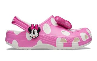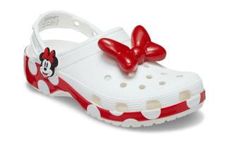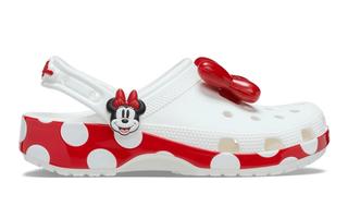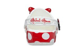 Leading the charge is Mickey Mouse himself, whose black-and-red Classic Clog pulls directly from his timeless color palette. A sculpted Mickey face anchors the toe box, while matching accents along the midsole and strap keep the look cohesive without going overboard. Minnie Mouse follows closely behind with two separate takes — a white-and-red option that stays true to her classic polka-dot look, and a pink-and-white pair that adds a softer, more playful twist. Both feature oversized bow detailing up top, giving each clog a strong visual identity from every angle.