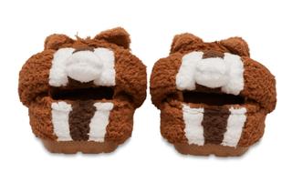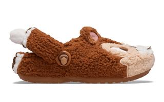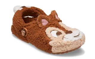 Goofy’s entry brings a more chaotic energy, pairing a black base with lime green footbeds and bold strap accents that reflect his offbeat personality. His exaggerated facial details sit front and center, giving the pair a toy-like quality that feels right at home in Crocs’ catalog. Rounding out the collection are Chip and Dale, arguably the most unexpected inclusion. Their clogs arrive wrapped in plush, faux-fur uppers, complete with facial features and ear detailing that push the Classic Clog silhouette into full costume territory.