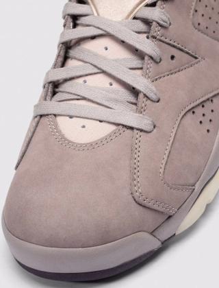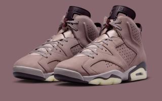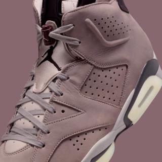This upcoming pair is dressed in muted taupe nubuck across the upper, delivering a soft yet structured feel. The monochromatic base is accented by darker hits on the heel tab and midsole, while the lace toggle and heel spoiler add subtle contrast. Perforations along the panels and collar retain the AJ6’s original performance roots, while co-branded insoles mark the collaboration.