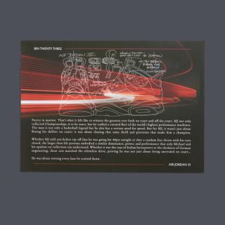 The Air Jordan 6 “Bin 23” continues that approach, with production limited to just 2,300 pairs. The pair arrives dressed in Off Noir with Picante Red accents, constructed from smooth, premium leather ane suede throughout. According to the accompanying card, the design draws direct inspiration from luxury performance cars—a theme reflected in both materials and finishing touches.
