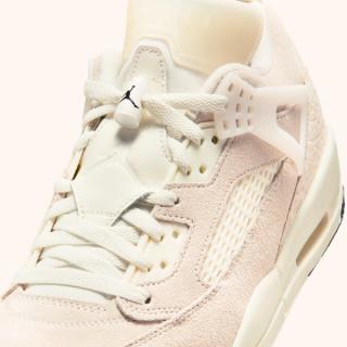Classic Spizike details remain intact, including the translucent wing panels and the visible Air unit at the heel, grounding the pair firmly in Jordan Brand DNA. Red accents underfoot and on the branding add just enough contrast to keep the design rooted in performance heritage, even as the overall execution leans more lifestyle-forward.