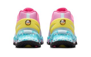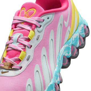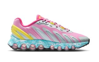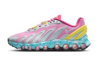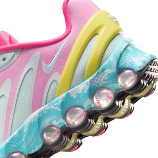Raegan Scheid's take on the future-forward Air Max Dn8 celebrates her love of softball and beaches. Iconography associated with the former is "hidden" across the pink upper, with the latter coming to life via wave graphics printed onto the midsoles.