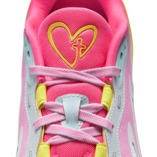 Khovny Vignery's contribution to the Nike Doernbecher Freestyle program is one of the collection's most imaginative. Mismatched presentations take over right and left shoes, which feature glitter, detachable friendship bracelets, and even a replica of her stuffed monkey, Pinky Doo Doo.