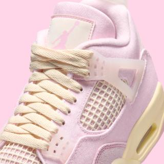 Official images of the Women’s Air Jordan 4 “Pink Denim” have surfaced, confirming an April release for the women’s-exclusive colorway. The pair delivers a soft, tonal update to the classic 1989 silhouette, built around a full pink denim upper.