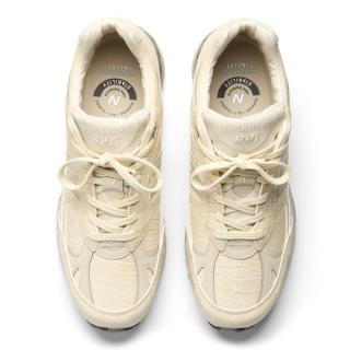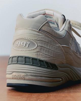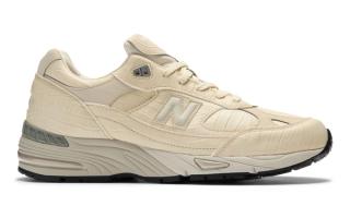 Instead of following the expected mesh-and-suede formula, the New Balance 991 "Oyster Grey" arrives wrapped in textured croc-embossed leather across much of the upper. The finish brings a more luxurious feel to the heritage runner while still maintaining the silhouette’s familiar shape and proportions.