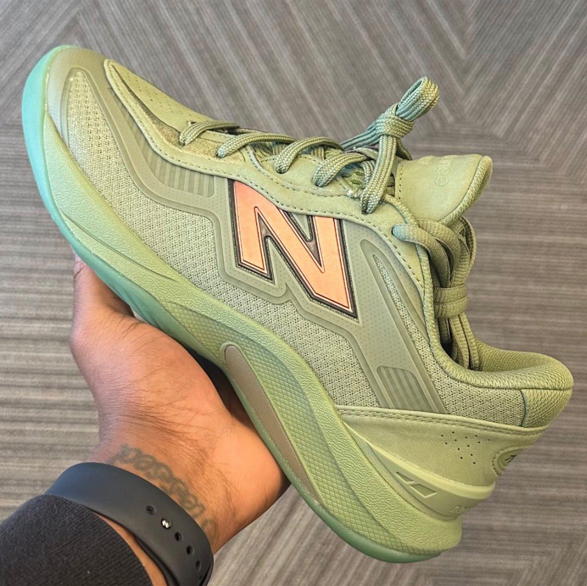 Images shared by Nick DePaula provide a closer look at the model, which leans into New Balance’s evolving basketball design language. The New Balance Kawhi 5 borrows cues from the brand’s recently introduced P350 and P400 silhouettes, featuring sculpted sidewalls, layered synthetic and mesh paneling, and an enlarged “N” logo integrated cleanly into the upper. The midsole geometry appears streamlined yet aggressive, built for stability and controlled explosiveness — traits that align directly with Leonard’s methodical game.