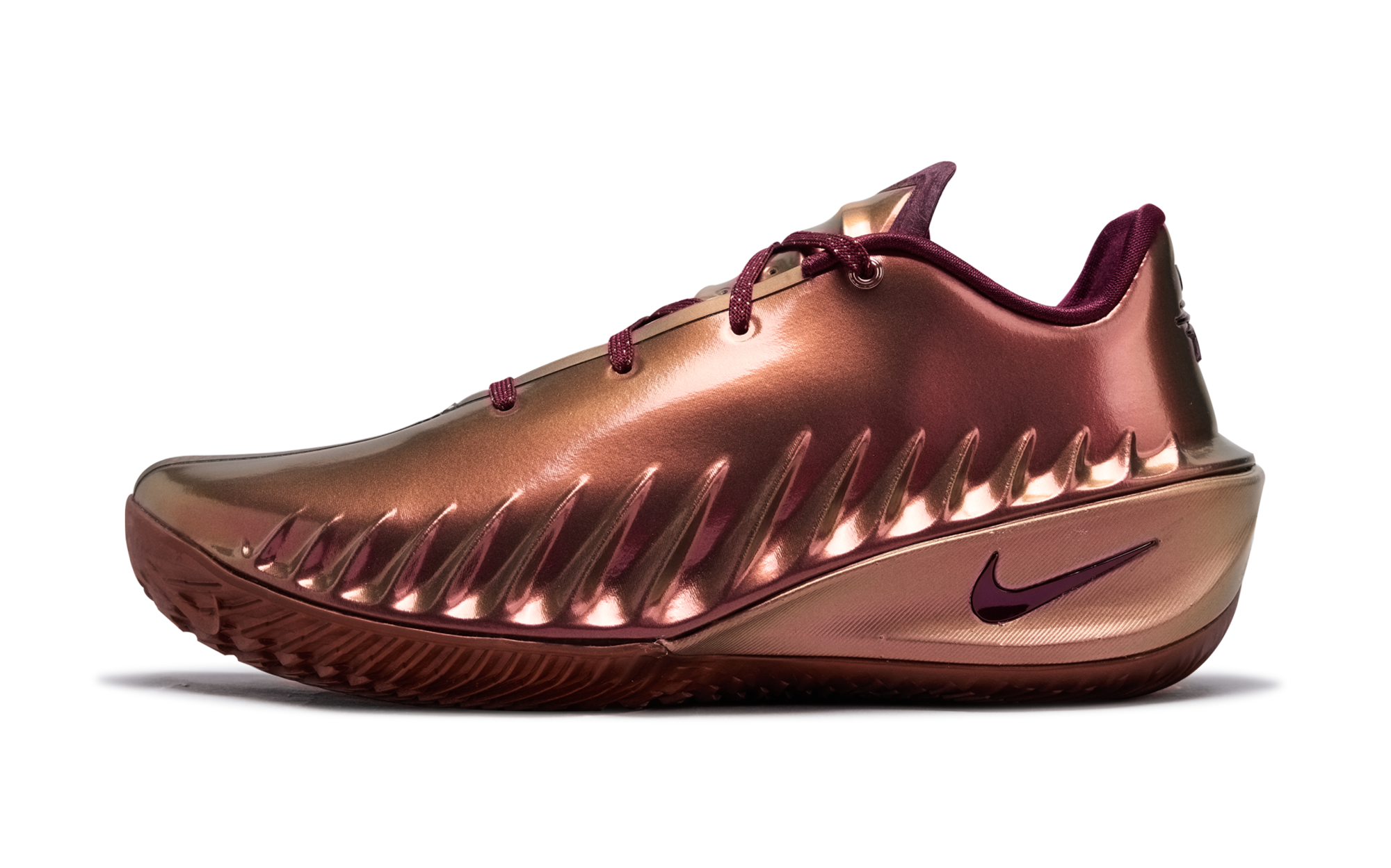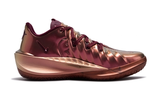 Officially clad in a "Metallic Rose Gold/Deep Maroon" medley, the latest Greater Than basketball shoe features a shimmering finish across its upper. The synthetic build doesn't feature a one-to-one aesthetic like the aforementioned "Copper" pair, but the through-line is there—especially when considering the current state of Nike Basketball.