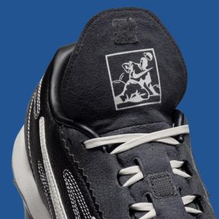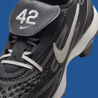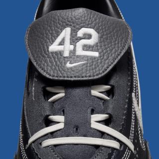 Previously, the budget-friendly V5 RNR appeared in a black and off white color scheme and with "42" iconography on the tongue. A newly-surfaced Diamond Standout baseball cleat indulges in similar elements, as well as other nods to Robinson—including his name on the spine of each shoe and a graphic of him sliding underneath the fold-over tongue.