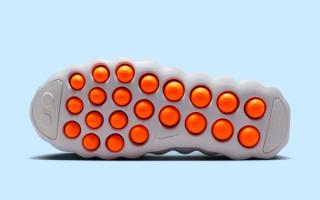 Beneath the foot sits the silhouette’s most distinctive element: a grid of rounded pods across the outsole designed to stimulate sensory interaction with each step. The textured nodes create a massaging sensation as the wearer moves, reinforcing the Mind program’s focus on tactile engagement and neurological response.