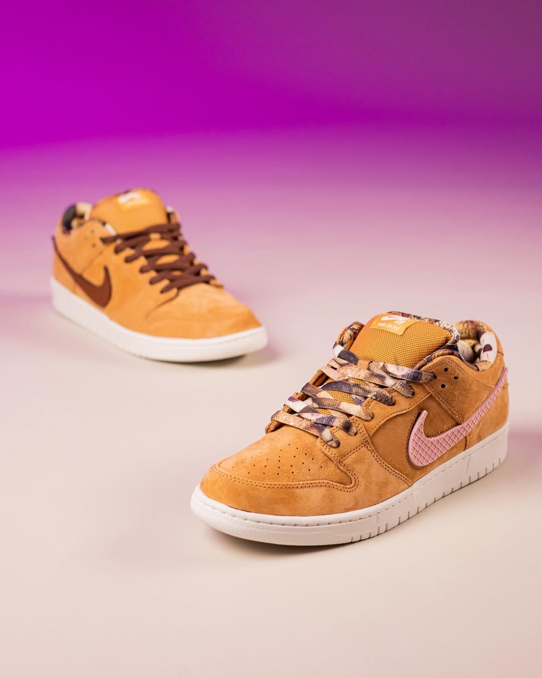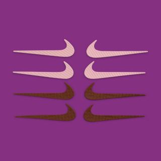 - Interchangeable Swooshes: Wearers can swap between a solid brown "croc-style" swoosh or a pink grid-patterned option.
