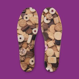 - Biscuit Patterning: The classic flat laces and the inner lining are printed with an actual biscuit texture.