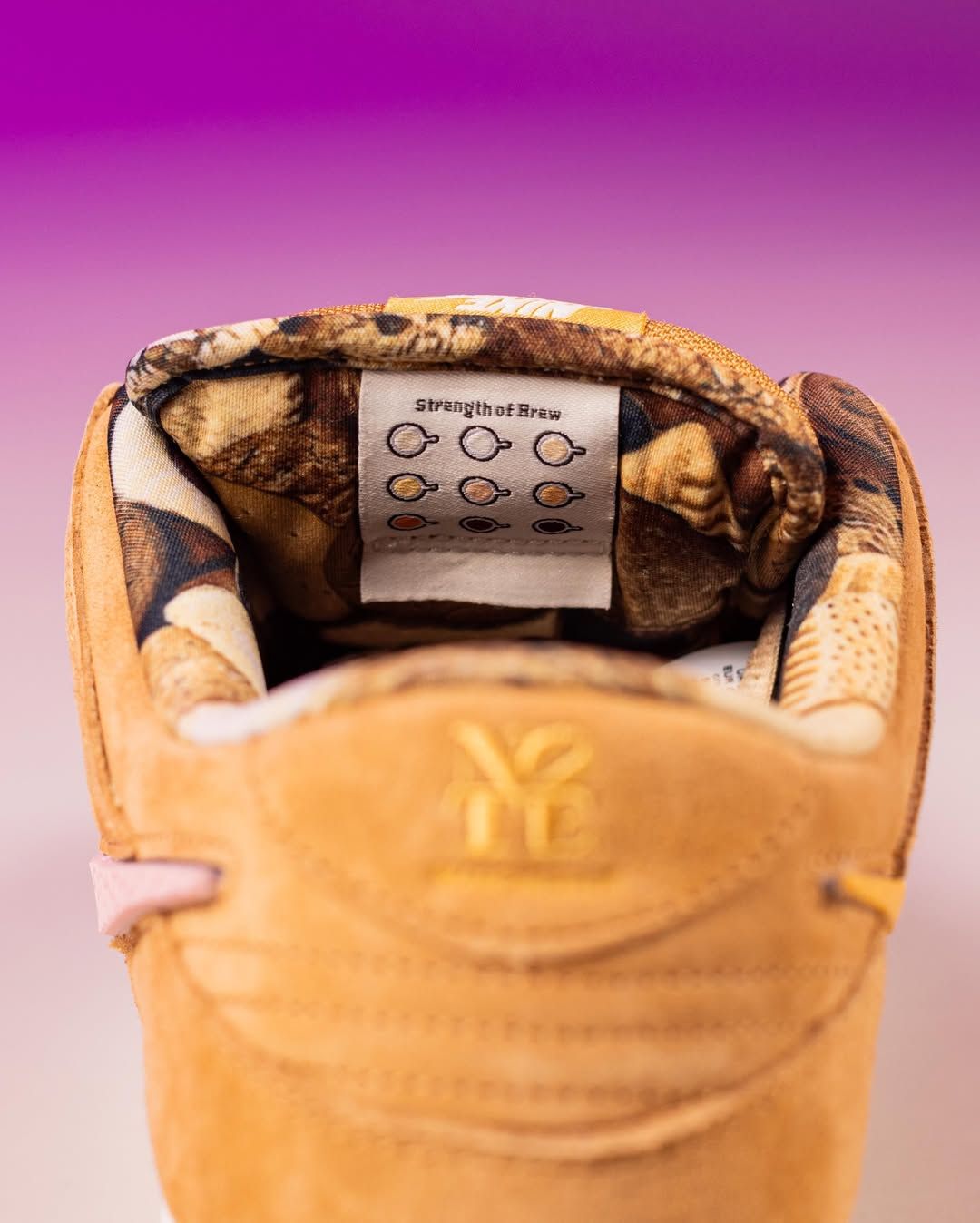 - The "Mug Ring": A visceral detail on the outsole mirrors the brown ring left behind by a hot mug of tea on a table.
