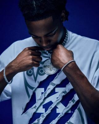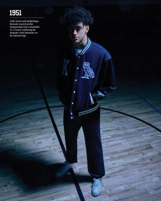 The OVO x Kentucky Wildcats “Banner Years” collection features eight pieces in total, with each item referencing a championship era that helped shape the Wildcats’ storied basketball tradition. Classic Kentucky blue and white color palettes appear throughout the lineup, paired with refined graphics, subtle branding, and references to the program’s championship banners. Kentucky guard and future star Jasper Johnson helped usher in the collection as well, appearing in campaign imagery showcasing the capsule ahead of its release.
