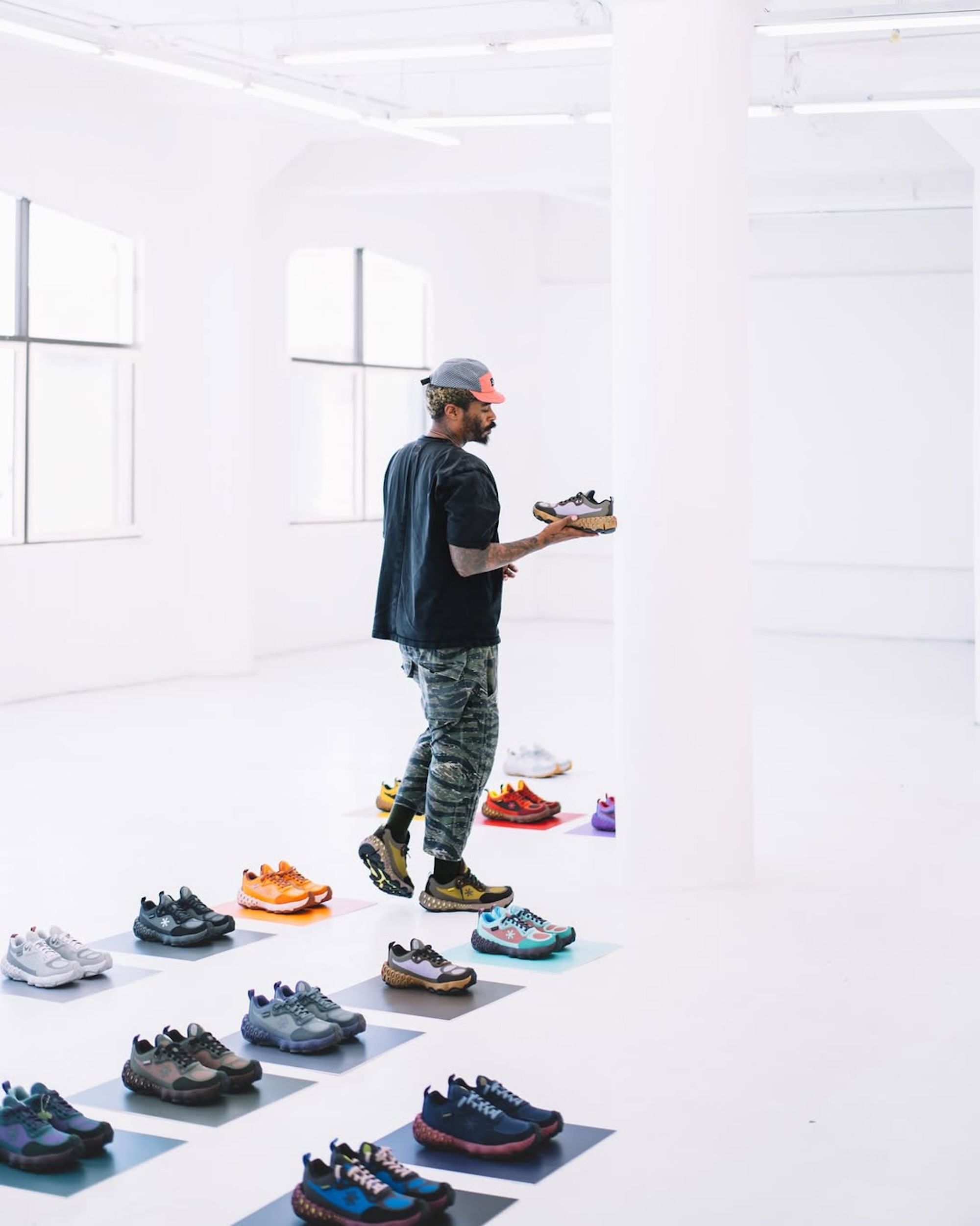 The "shoe to do stuff in" is priced at $150 and launched in "Malawi" (Blue/Orange), "Yukon" (Brown/Mustard), "Mung" (Green/Tan/Orange), and "Slaw" (Purple/Green) color schemes. Expect future drops to further reference nature.