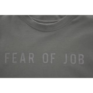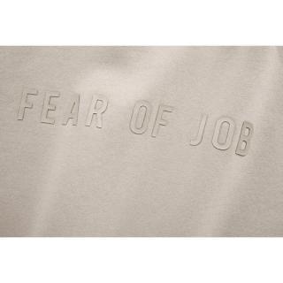 The collection centers around classic short-sleeve tees and heavyweight crewneck sweatshirts. Each piece features subtly embossed “FEAR OF JOB” lettering across the chest, keeping the design minimal while allowing the slogan to quietly stand out. The tonal finish ensures the message blends naturally into the garments rather than dominating the design.